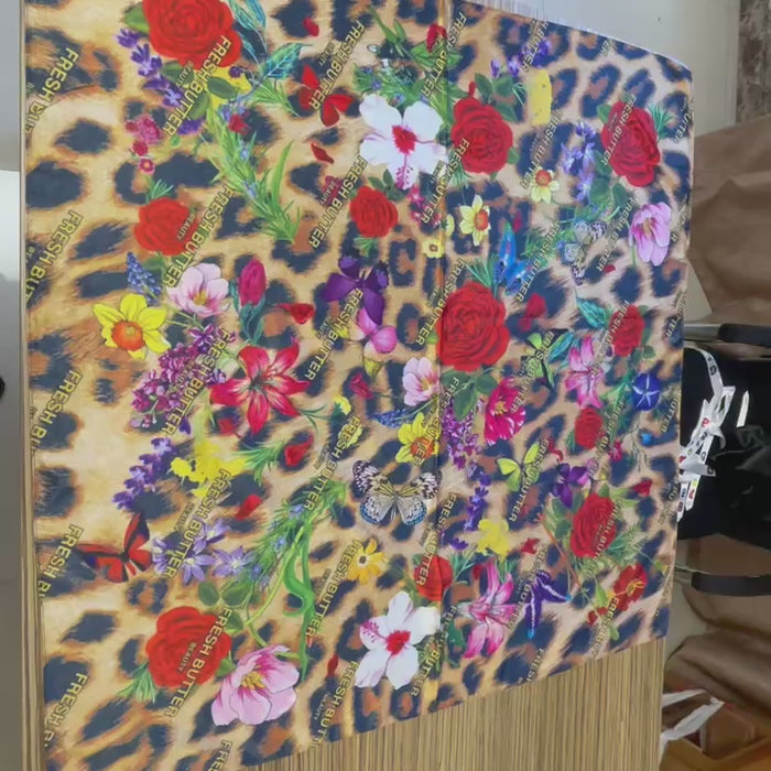 Signature Logo , Leopard ,Flower & Butterfly Effect Design Satin Head Scarf